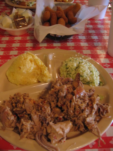 I’ve never accused North Carolina barbecue of looking pretty, but it sure is tasty. Exhibit A is this plate of ‘cue at Wilber’s in Goldsboro: